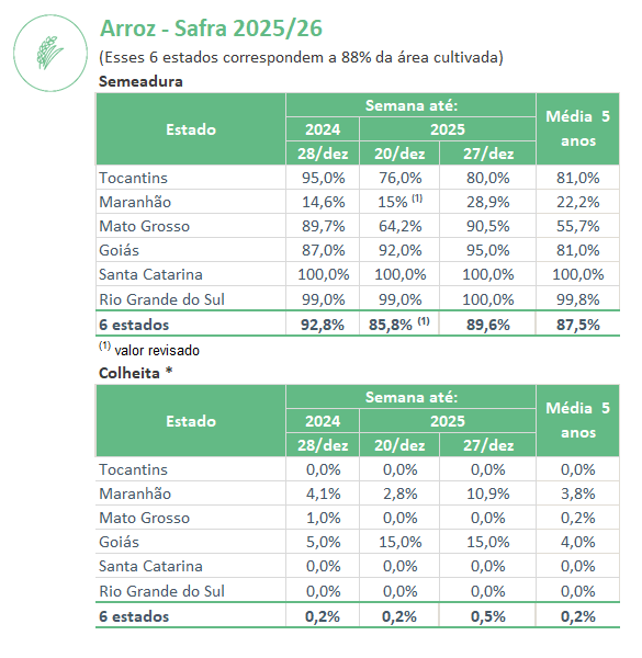 Confira o Monitoramento Semanal das Condições das Lavouras de 29 de dezembro de 2025 completo, clicando aqui!