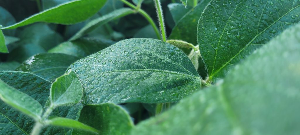 Figura 3. Molhamento foliar, água livre em folhas de soja.