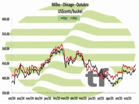O milho negociado em Chicago fechou em alta nesta terça-feira. O mercado segue confiante sobre o encontro entre Xi Jinping e Donald Trump na Coreia do Sul nesta quinta-feira. A expectativa é que a China volte a comprar grãos, principalmente soja, o que pode tirar a pressão sobre o setor. A confirmação de um acordo comercial com o Japão, um importante comprador de milho dos EUA, com o objetivo de aumentar significativamente o