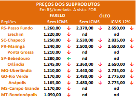 No que se refere aos óleos vegetais, o óleo de canola foi negociado em Rotterdam a US$ 860,16 (855,55)/t, o óleo de linhaça, a US$ 770,0 (767,50), o de soja a US$ 765,46 (746,38), o óleo de girassol a US$ 755,00 (750,00), o óleo de palma a US$ 515,00 (510,00).
