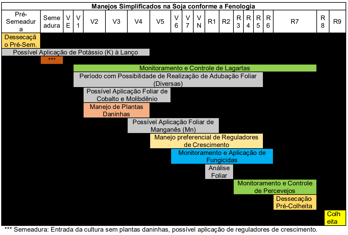 Figura 2. Manejos Simplificados na Cultura da Soja conforme a Fenologia.
