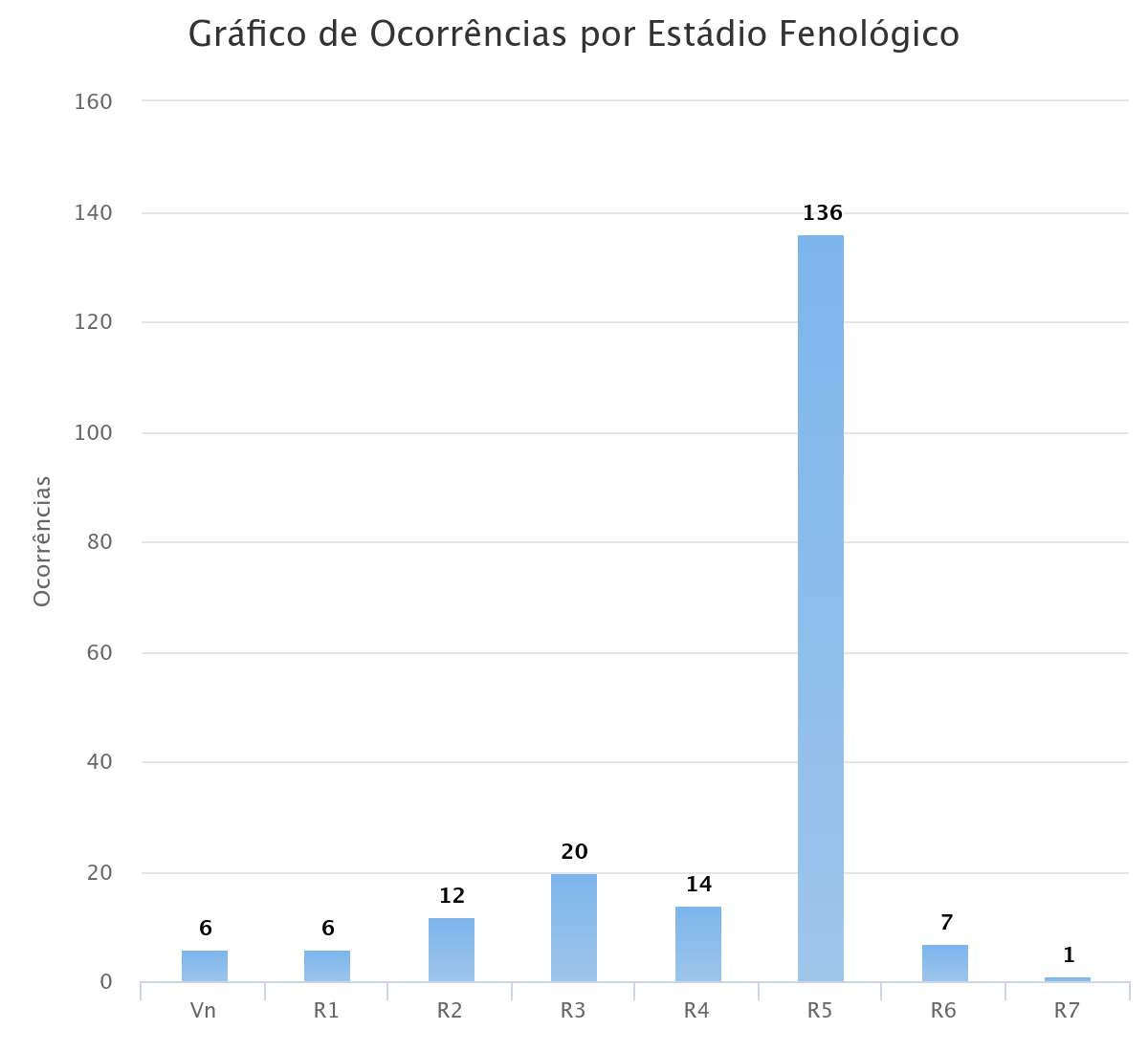 A maioria dos casos foram relatados em período reprodutivo da soja, em estádio de enchimento de grãos (figura 3), sendo esse, um dos períodos mais sensíveis da soja a ocorrência de estresses bióticos e abióticos.