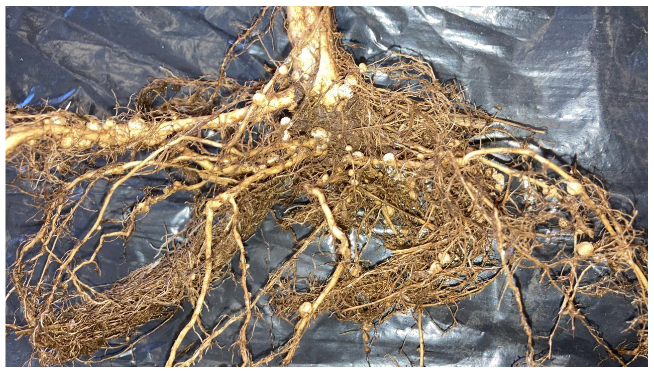 Essas bactérias entram em contato com as raízes, infectando-as via pêlos radiculares, formando uma nova estrutura conhecida como nódulo, como pode ser visto na Figura abaixo.