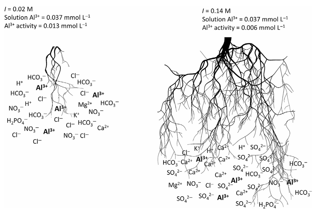 Dentre as características químicas do solo que afetam o crescimento e desenvolvimento vegetal, destaca-se a acidez do solo. Solos ácidos normalmente estão associados a presença de alumínio tóxico (Al3+). Esse alumínio disponível atua de forma negativa, reduzindo e/ou até inibindo o crescimento das raízes das plantas. Para reduzir a toxicidade de Al3+ no solo, uma das alternativas mais difundidas é a calagem. Entretanto, por apresentar baixa mobilidade do solo, a ação do calcário é limitada as camadas superiores do solo, fato que dificulta o controle da acidez em sistemas de produção consolidados como sistema plantio direto.