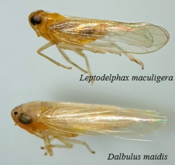 Figura 1. Cigarrinha do milho Dalbulus maidis e Leptodelphax maculigera.