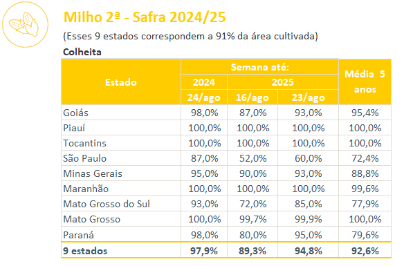 Confira o Monitoramento Semanal das Condições das Lavouras de 25 de agosto de 2025 completo, clicando aqui!