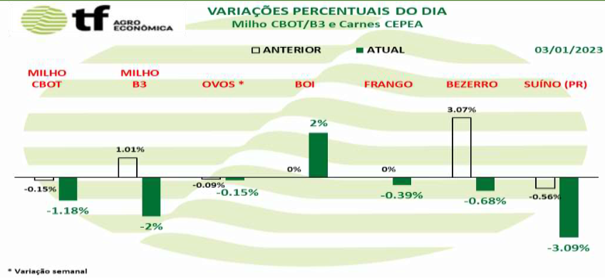 EMBARQUES MAIORES DE MILHO UCRANIANO: O Ministério Agrícola da Ucrânia informou que as exportações de milho de 22/23 atingiram 12,6 MMT, com 9% de avanço ano/ano, até 02/01/23.