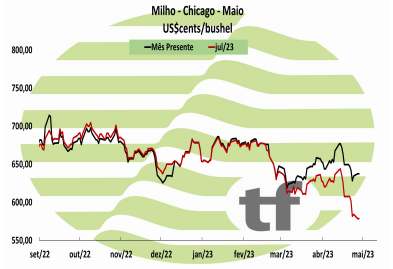 FECHAMENTOS DO DIA 02/05: A cotação de maio fechou em baixa de -0,23% ou $ -1,50/bushel a $ 638,00. A cotação para julho 2023, início da nossa safra de inverno, fechou em baixa de -0,77 % ou $ -4,50 bushel a $ 580,00.