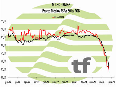 BRASIL EXPORTA 470,8 MIL TONELADAS EM ABRIL, QUEDA DE 31,8% ANTE ABRIL DE 2022: O Brasil exportou em abril 470.805 toneladas de milho, volume 31,8% menor do que as 690.295 toneladas contabilizadas em abril do ano passado. Na comparação com março, quando o País enviou ao exterior 1,335 milhão de toneladas, a queda foi de 64,7%. Os dados foram divulgados pela Secretaria de Comércio Exterior (Secex) do Ministério do Desenvolvimento, Indústria, Comércio e Serviços (MDIC) nesta tarde e consideram 18 dias úteis. A receita obtida com os embarques de milho em abril foi de US$ 146,961 milhões, recuo de 36,6% ante os US$ 231,815 milhões apurados em igual mês de 2022 e de 63,6% ante a receita de US$ 403,213 milhões registrada em março. O preço médio pago por tonelada de milho em abril foi de US$ 312,10, 7% menor do que os US$ 335,80/tonelada de um ano atrás e 3,4% abaixo dos US$ 302,00 de março.