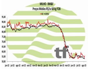 CAUSAS DA QUEDA: As cotações do milho no mercado futuro da B3, em São Paulo continuaram a recuar nesta sexta-feira, com a queda de Chicago quatro vezes maior do que a alta do dólar e com a pressão de ofertas do interior para desocupar armazéns e escoar a safra. Há algum volume armazenado a céu aberto no Mato Grosso, que precisa ser escoado antes das chuvas de novembro.