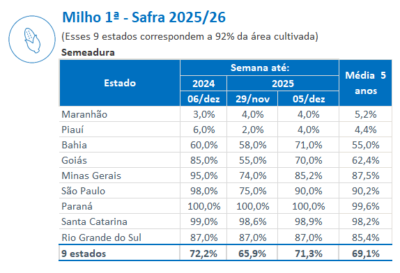 Confira o Monitoramento Semanal das Condições das Lavouras de 08 de dezembro de 2025 completo, clicando aqui!