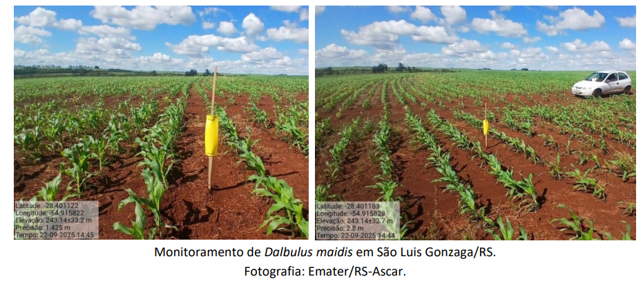 O monitoramento de cigarrinha-do-milho, realizado pela Emater/RS-Ascar em conjunto com os agricultores, indicou aumento de incidência da praga na região do Alto Uruguai. Também se elevou a incidência de percevejos. Nesse cenário, a aplicação de inseticidas em conjunto com herbicidas tem se mostrado uma alternativa para a redução de custos.
