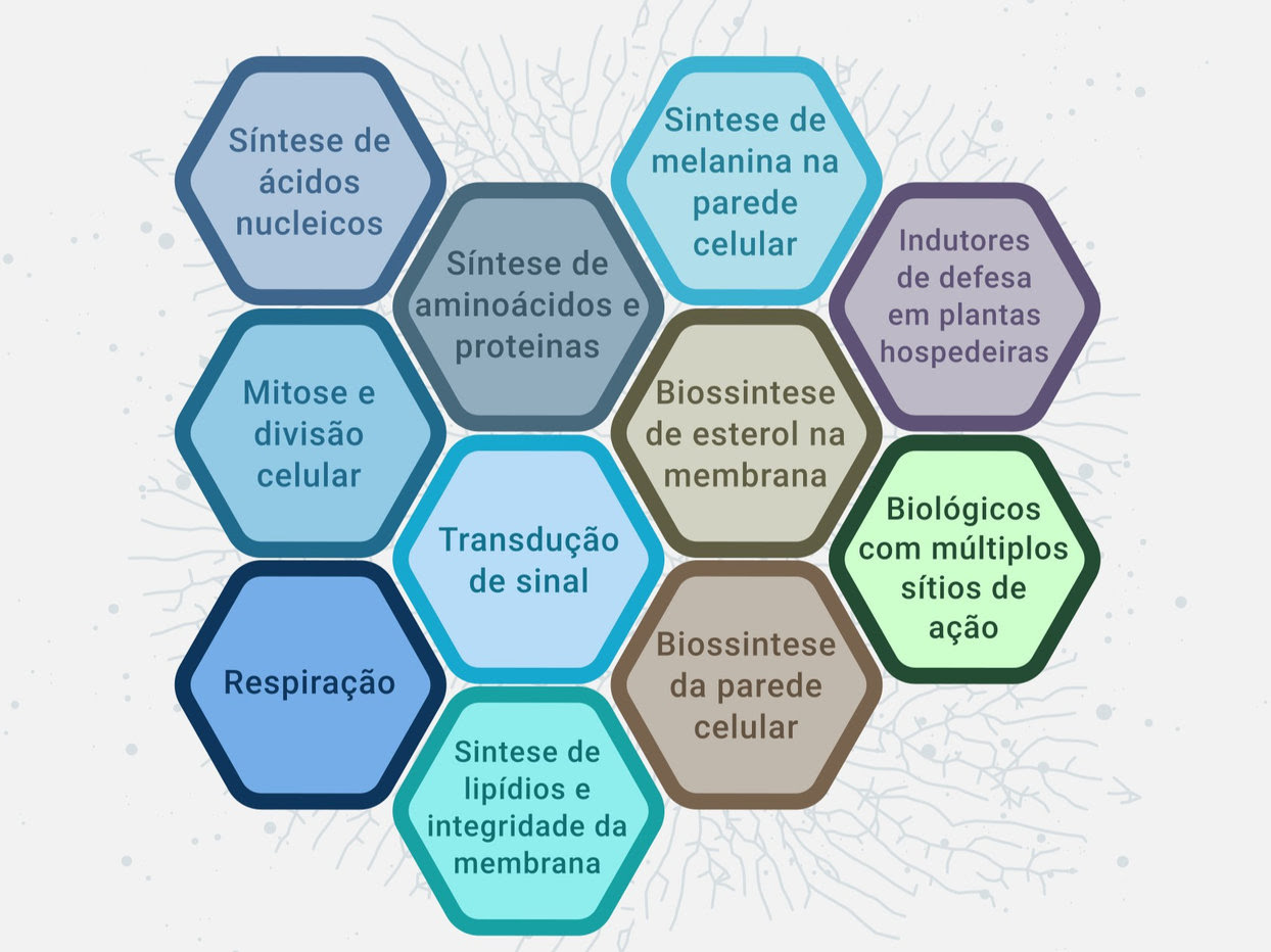 Figura 2. Modos de ação de fungicidas e sítios de ação, com base na classificação do FRAC-BR.