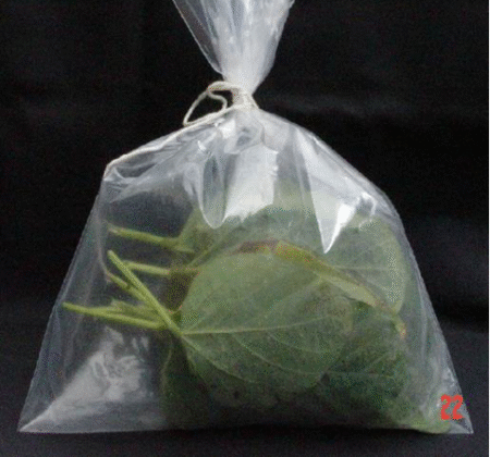 Figura 4. Câmara úmida com saco plástico e papel (ou algodão) umedecido para induzir a formação das estruturas reprodutivas de Phakopsora pachyrhizi.