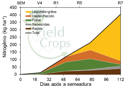CAFARO, N. et al. Insufficient nitrogen supply from symbiotic fixation reduces seasonal crop growth and nitrogen mobilization to seed in highly productive soybean crops. Plant Cell & Environment, v. 43, n. 8, p. 1958–1972, 2020. Disponível em: < https://onlinelibrary.wiley.com/doi/full/10.1111/pce.13804 >, acesso: 06/01/2026.