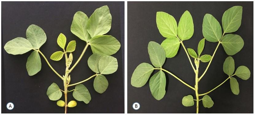 Figura 2. Plantas de soja nos estádios vegetativos V4 (A) e V5 (B).