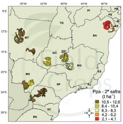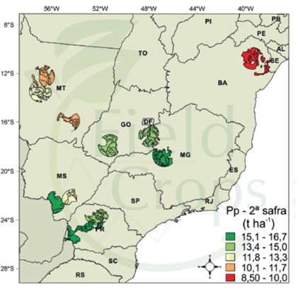 Figura 2. Potencial de produtividade do milho (PP) na segunda safra para o Brasil.