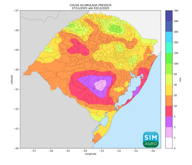 As informações constam no Boletim Integrado Agrometeorológico 48/2025, produzido pela Secretaria da Agricultura, Pecuária, Produção Sustentável e Irrigação (Seapi), em parceria com a Emater/RS-Ascar e o Instituto Rio Grandense do Arroz (Irga).