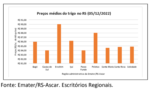 Na região administrativa da Emater/RS-Ascar de Caxias do Sul, houve paralização da colheita por alguns dias em decorrência de chuvas em Vacaria, Esmeralda e Muitos Capões, principais municípios produtores da região. Com a volta do tempo seco, a colheita foi retomada, e foi realizada em aproximadamente 80% dos cultivos. Onde a chuva foi mais volumosa e onde as lavouras estavam prontas para a colheita, ocorreu pequena perda de massa nos grãos, reduzindo o PH, mas sem comprometer a qualidade industrial do cereal.