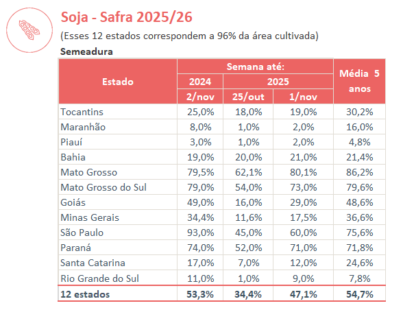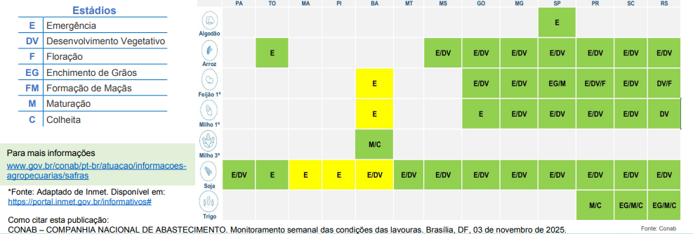 Confira o Monitoramento Semanal das Condições das Lavouras de 03 de novembro de 2025 completo, clicando aqui!