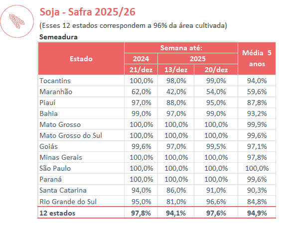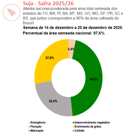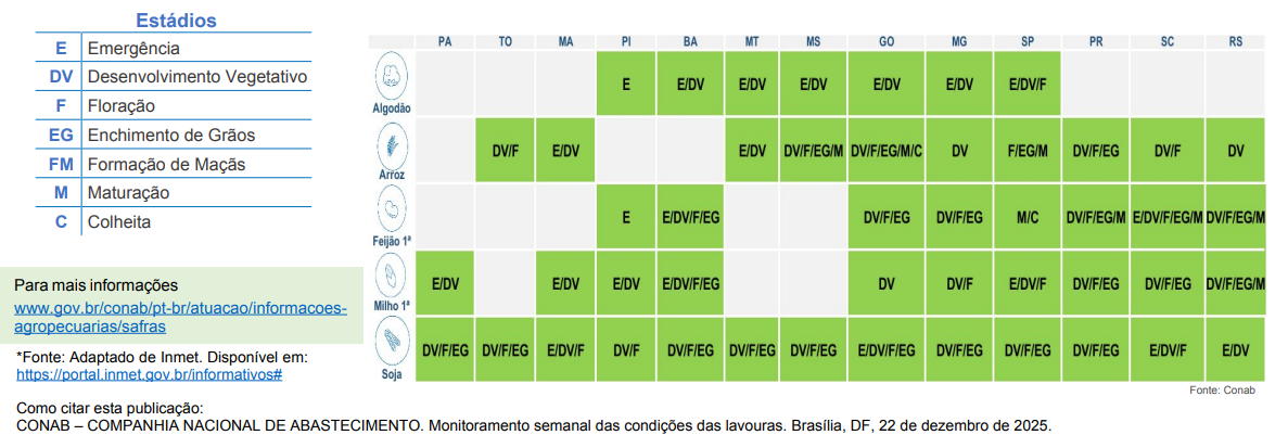 Confira o Monitoramento Semanal das Condições das Lavouras de 22 de dezembro de 2025 completo, clicando aqui!