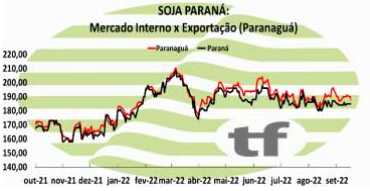 Porto de São Francisco do Sul em Santa Catarina marca manutenção e permanece a R$ 188,00 para 31/09. Algumas posições já estão com dificuldade de efetuar novas quedas, claro que quedas são péssimas para o produtor e, portanto, existe um forte controle em relação a oferta disponível. Ademais, nada foi efetuado em negócios.