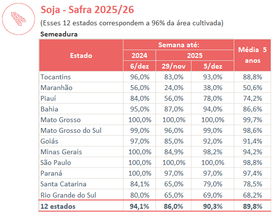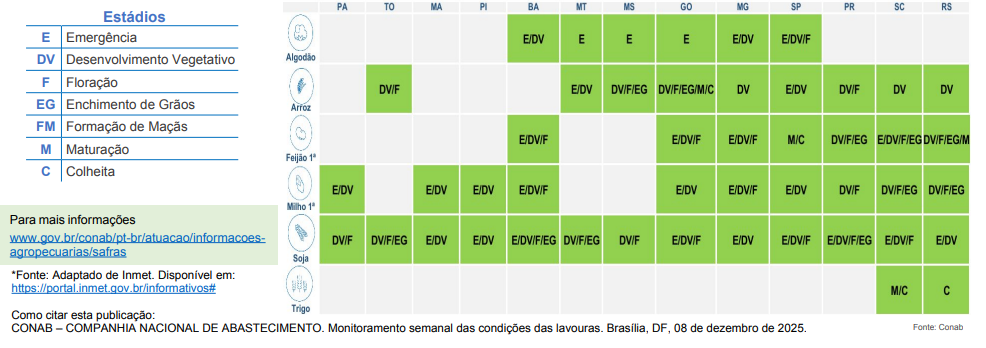 Monitoramento Semanal das Condições das Lavouras de 08 de dezembro de 2025 completo, clicando aqui!