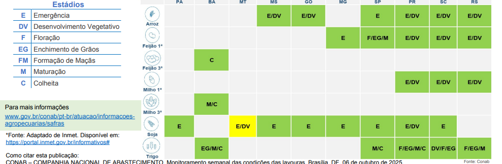 Confira o Monitoramento Semanal das Condições das Lavouras de 06 de outubro de 2025 completo, clicando aqui!