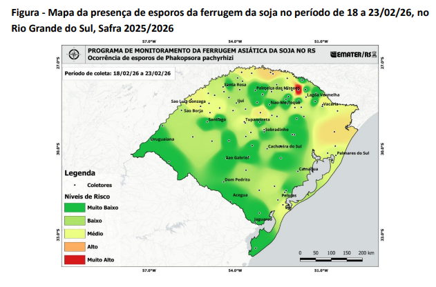 O cenário atual exige redobrada atenção, especialmente nas regiões classificadas com níveis de risco médio, alto e muito alto. Nessas áreas, recomenda-se intensificar o monitoramento das lavouras e a adoção de estratégias de manejo integrado da doença, incluindo o uso de fungicidas.
